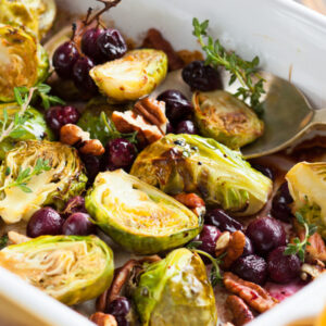 Maple-Roasted Brussels Sprouts with Toasted Pecans & Pomegranate Molasses