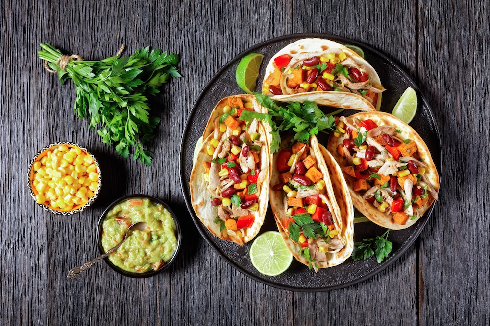 - Chicken & Bean Tacos with Vegan Sour Cream and Guacamole