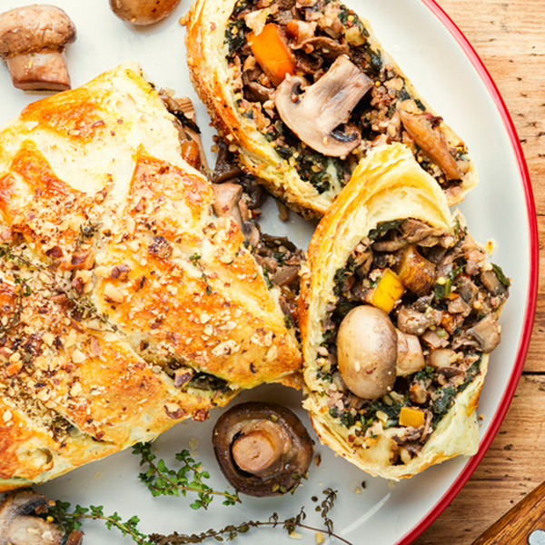 • Mushroom-Chestnut Wellington with Cashew Cream
