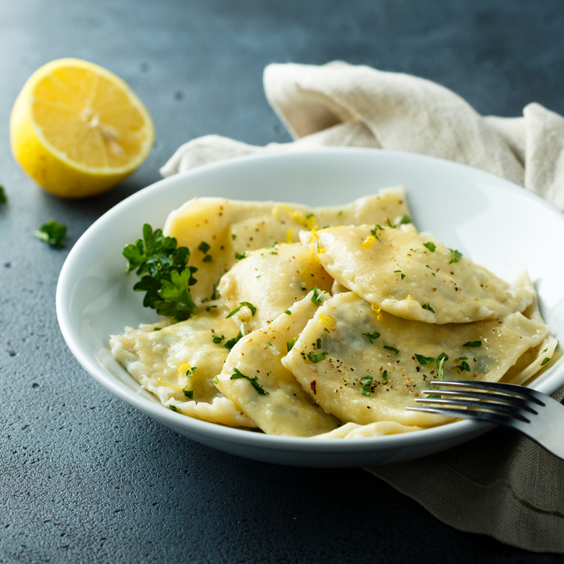 - Lemon Ricotta Ravioli in Sage Brown Butter
