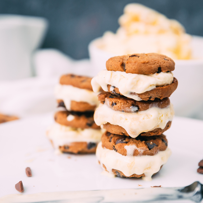 • Chocolate Chip Cookie Ice Cream Sandwich
